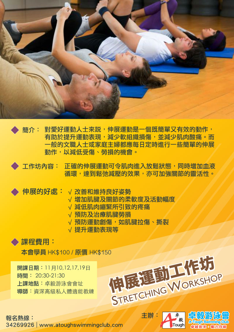 對愛好運動人士來說,伸展運動是一個既簡單又有效的動作,有助於提升運動表現,減少軟組織損傷,並減少肌肉酸痛。而一般的文職人士或家庭主婦都應每日定時進行一些簡單的伸展動作,以減低受傷、勞損的機會。