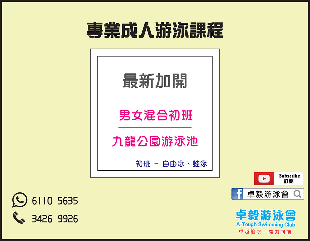 專業成人游泳班(男、女混合班) - 九龍公園游泳池【每班4-6人】(Staging)