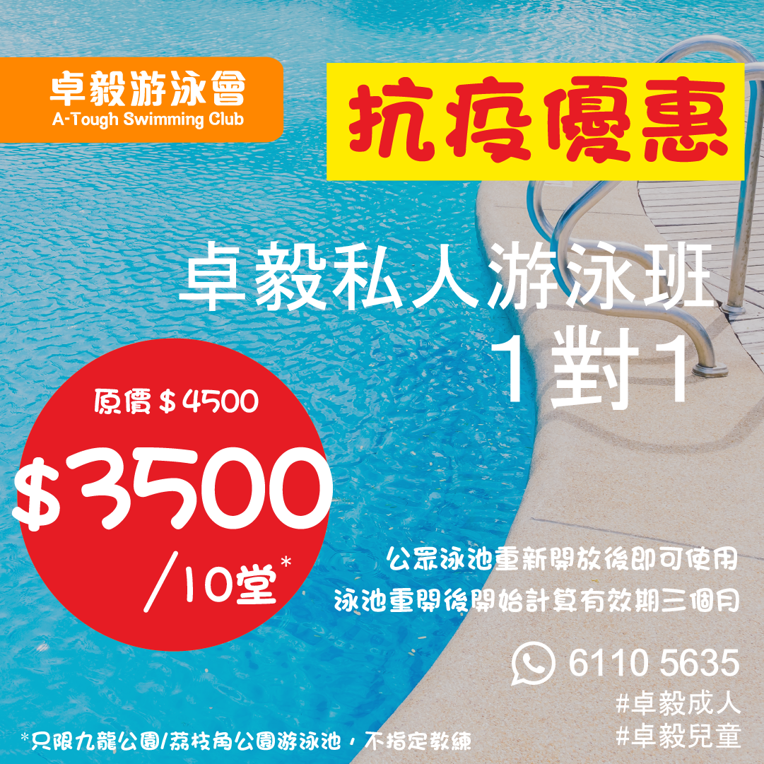 私人班上堂地點只限九龍公園/荔枝角公園游泳池,不指定教練。