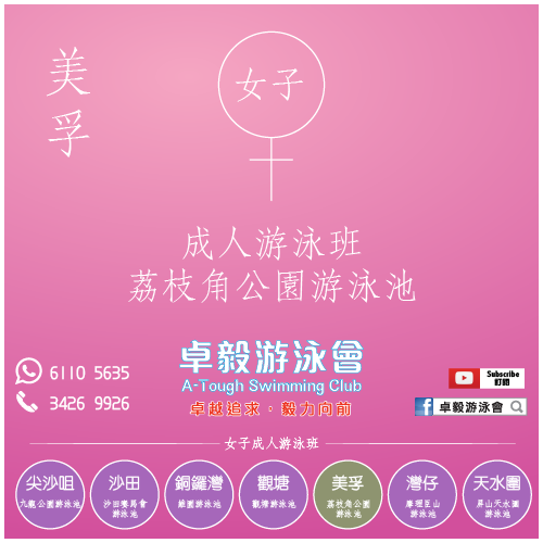 一個專為女性而設的游泳班,所有學員和教練都是女性。如女士們尷尬,上課時可以身穿白色上衣,就可以在舒適的環境學習游泳。