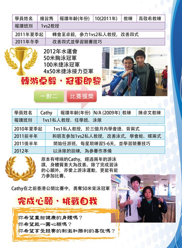 成人學員專訪: http://www.atoughswimmingclub.com/adult-class/interview