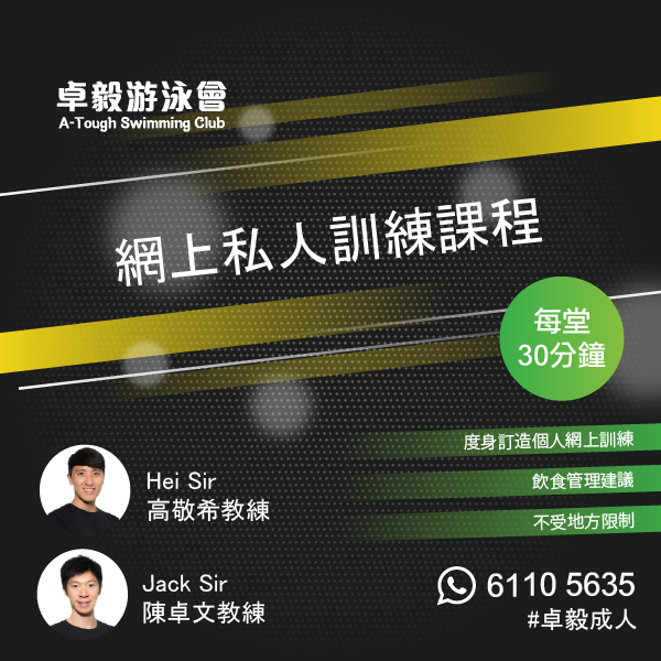 卓毅游泳會為您推出全新在線私人教練課程,只要您上到網,就可以跟專業教練Jack Sir/ 希sir 私人教練一對一做運動!